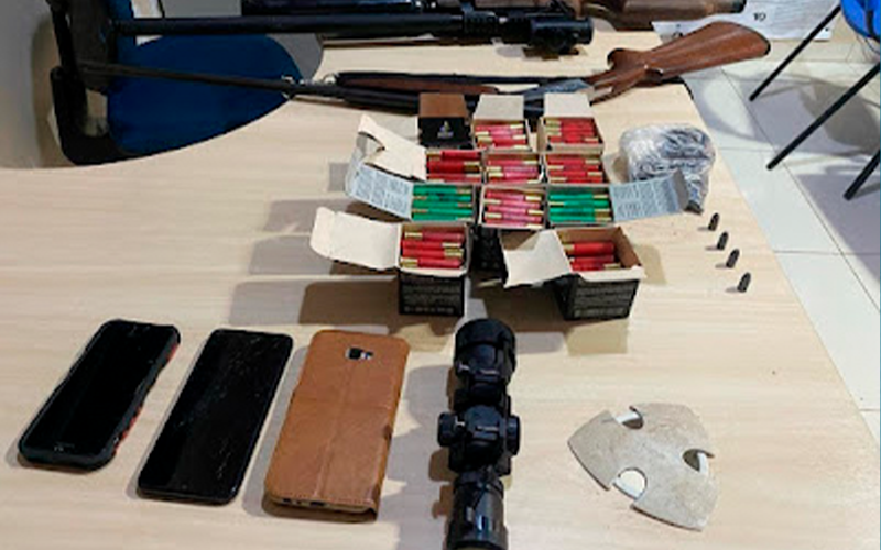 Também, no mesmo dia, a PM avistou um homem em atitude suspeita, o mesmo ao perceber a chegada da viatura, fugiu rapidamente, o que motivou a equipe a acompanhá-lo e realizar a abordagem. Com ele, foram encontradas 265 munições de calibre .36, uma luneta, um Red Dot, três telefones celulares, uma Espingarda Boito calibre 36 e uma Carabina. O suspeito não apresentou a documentação do armamento. Diante do fatos, o suspeito assim como os objetos apreendidos e encaminhados até a Delegacia de Polícia de Novo Progresso para os procedimentos legais.