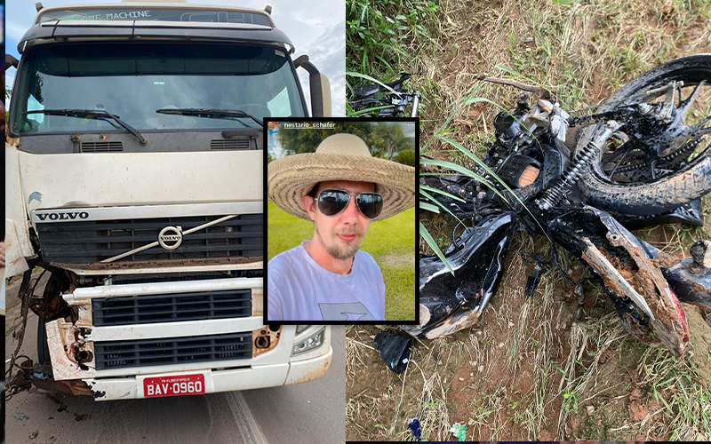 Segundo informações preliminares, o motociclista, identificado como NESTARIO FELIPE SCHAFER, cuja idade não foi divulgada, veio a óbito no local do acidente. Ainda não há detalhes sobre as circunstâncias da colisão.