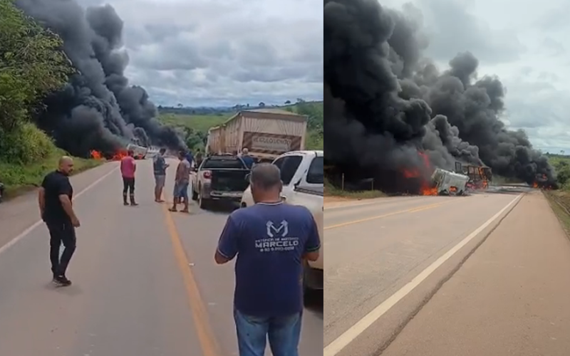 Relatos apontam que ao menos três pessoas teriam sido carb0nizadas dentro de um dos caminhões, mas ainda não há confirmação oficial sobre o número de vítimas ou as circunstâncias do acidente. A pista permanece parcialmente interditada.