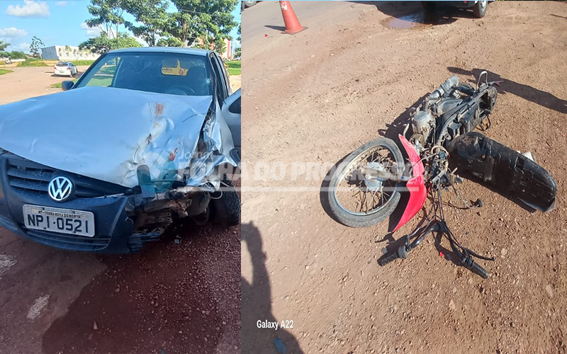 Foto: Reprodução | Um grave acidente foi registrado nesta quarta-feira 1 de janeiro de 2025, na Avenida Orival Prazeres, em Novo Progresso. Um carro e uma motocicleta colidiram próximo à rodoviária, deixando três pessoas feridas.