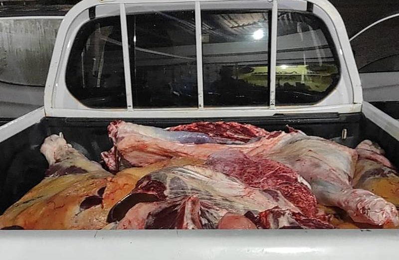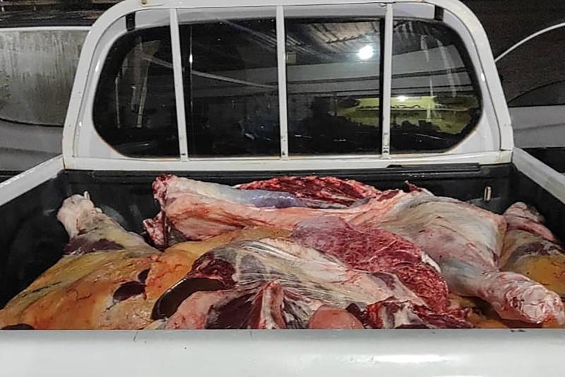 Foi apreendida uma carga de 12 quartos de carne bovina que estava sendo transportada ilegalmente em um veículo sem refrigeração, o que tira do produto as condições necessárias para que ele seja consumido.