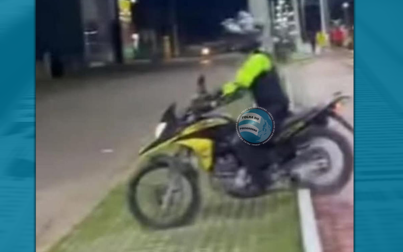 Foto: Reprodução | Neste fim de semana, uma imagem registrada por populares ganhou repercussão nas redes sociais ao flagrar um agente de trânsito trafegando de motocicleta sobre o canteiro central da Avenida Brasil, em Novo Progresso.