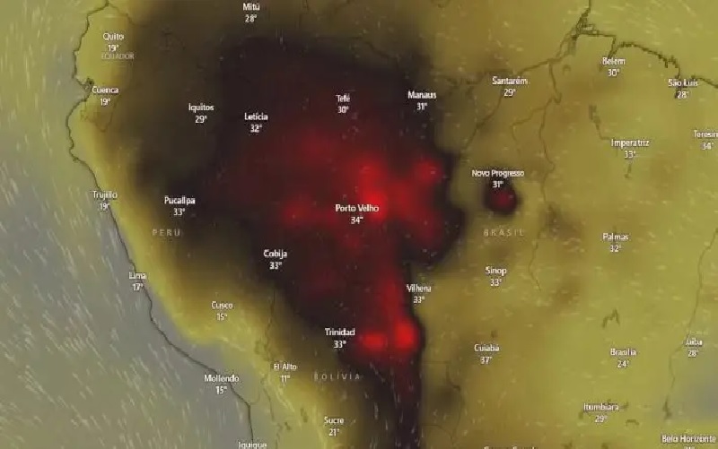 A falta de chuvas é um dos principais fatores que agravam a crise ambiental na região. O meteorologista Leonardo Vergasta, do Laboratório do Clima (Labclim) da Universidade do Estado do Amazonas (UEA), explicou que a mancha de fogo capturada pelo satélite indica uma alta concentração de dióxido de carbono na atmosfera, consequência direta das queimadas. O acúmulo desse gás intensifica o efeito estufa, contribuindo para o aquecimento global e afetando o equilíbrio climático da região.