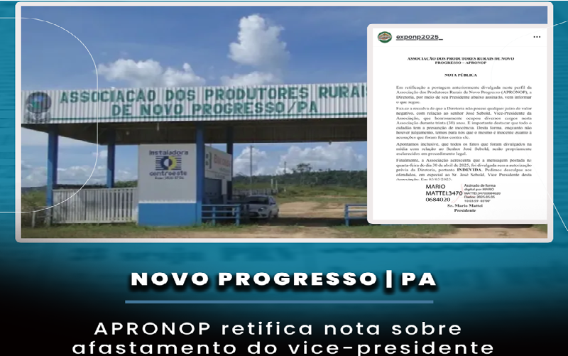 Em retificação a postagem anteriormente divulgada neste perfil da Associação dos Produtores Rurais de Novo Progresso (APRONOP), a diretoria, por meio de seu presidente abaixo assinado, vem informar o que segue.