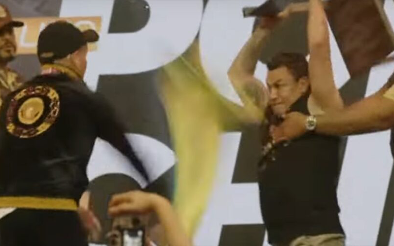 Popó ataca lutador argentino com cadeirada para promover evento de boxe (foto: Reprodução/Fight Music Show 5)