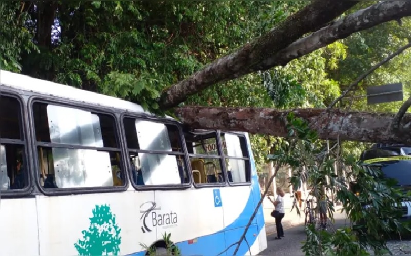 Na manhã desta sexta-feira (04), uma árvore de grande porte do Bosque Rodrigues Alves caiu na avenida Almirante Barroso, próximo da Travessa Lomas Valentinas, no bairro do Marco, em Belém. O acidente ocorreu por volta das 8h e atingiu um ônibus da linha Distrito – Pátio Belém, uma van e um carro que passavam pelo local.