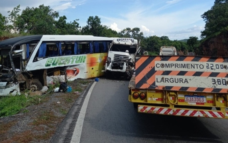 Dezessete pessoas, identidades não divulgadas, ficaram feridas na tarde de sábado (18), após um acidente que envolveu um ônibus de viagem e um caminhão na BR-070, na cidade de Cáceres (225 km de Cuiabá).