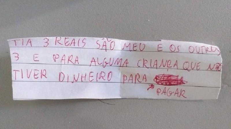 A mãe da aluna contou à professora que a menina queria “levar um dinheirinho a mais”, mas tinha vergonha de que algum amiguinho ouvisse. Ela então sugeriu que a filha entregasse o bilhetinho.