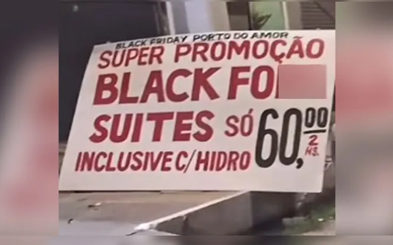 Estabelecimento realiza promoção inusitada para Black Friday com suítes a R$ 60. | Foto: Reprodução/Redes Sociais