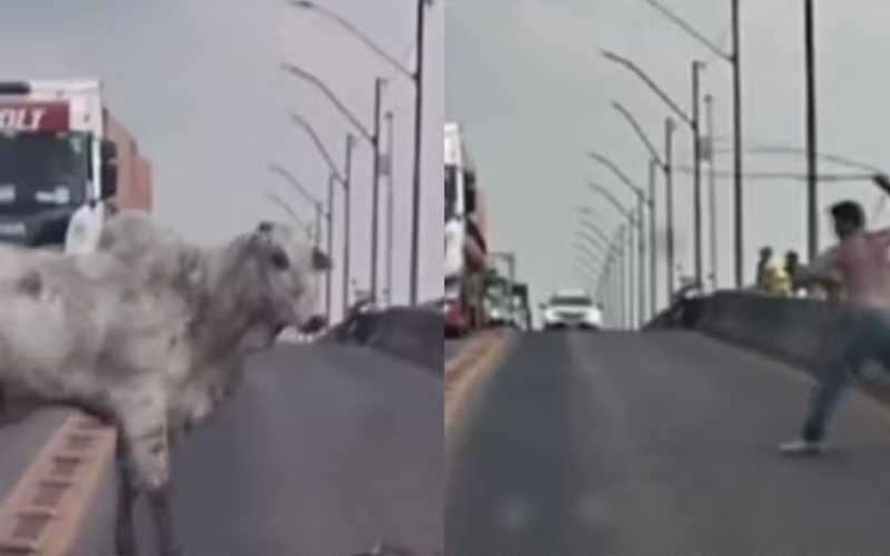 Um boi fugiu de dentro da carreta que transportava ele, na ponte da PA-252, que dá acesso a Moju, cidade no nordeste do Pará. No local, um longo engarrafamento se formou. Ninguém ficou ferido.