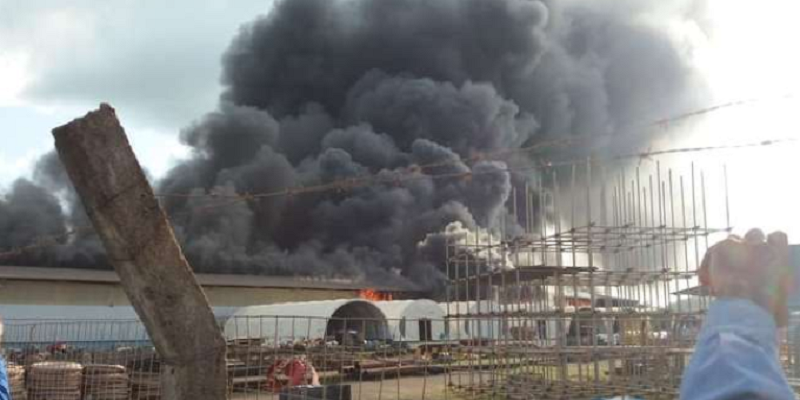 Incêndio destruiu galpão na parte administrativa da empresa (Twitter/Reprodução)