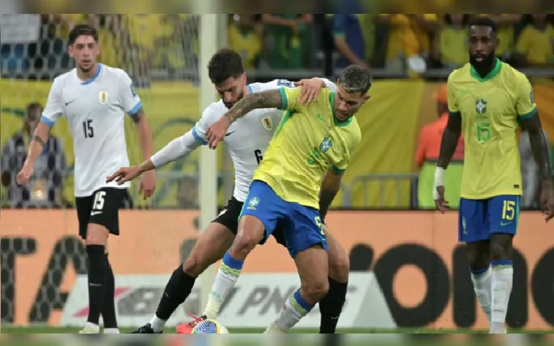 (| Foto: Reprodução / X Conmebol) -Seleção não joga bem, empata contra o Uruguai e cai para 5º lugar nas Eliminatórias