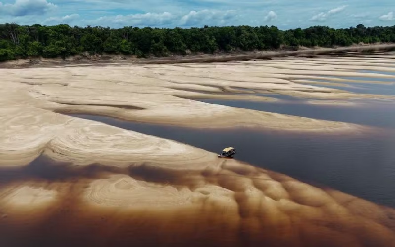 Gigante seco. O Rio Negro, um dos símbolos da Amazônia, tem sofrido com estiagens ano após ano — Foto: MICHAEL DANTAS/AFP/1-10-2024