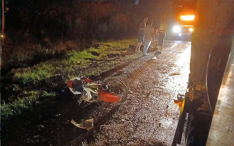 Foto: Reprodução | Um grave acidente foi registrado na noite desta quarta-feira (12) na BR-163, em Novo Progresso. Um motociclista que trafegou pelo acostamento, foi atropelado por um caminhão e morreu no local.