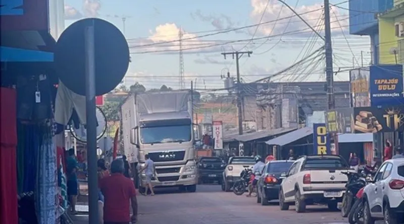 (Foto:Reprodução) – Um caminhão-baú enroscou-se na fiação, causando a interrupção do fornecimento de energia em bairros da cidade, na tarde desta quarta-feira, 21 de maio de 2025, em Novo Progresso (PÁ).