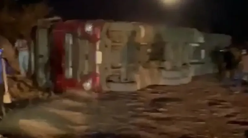 Foto:Reprodução | Um caminhão carregado tombou na noite desta quarta-feira, 2 de julho, após não conseguir subir uma ladeira na BR-230, a Rodovia Transamazônica, nas proximidades da cidade de Uruará, no sudoeste do Pará.