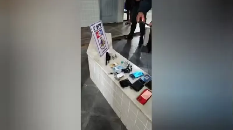 Celulares, armas de fogo e entorpecentes apreendidos com as suspeitas — Foto: Reprodução/Portal Encontro das Águas