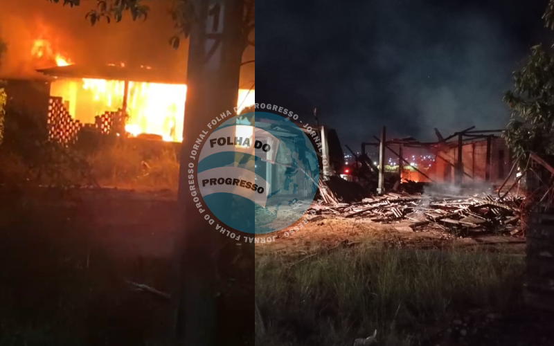 Foto: Reprodução | Na noite desta quinta-feira, 24 de abril de 2025, uma residência localizada nas proximidades do lago municipal de Novo Progresso, foi completamente consumida por um incêndio.