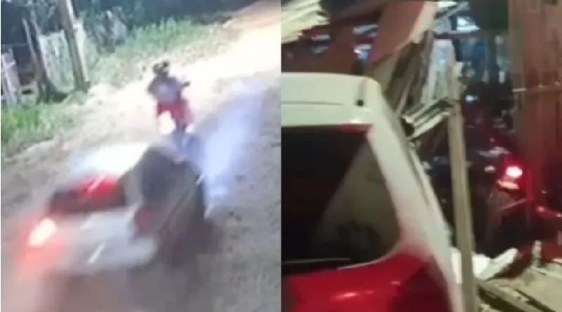 Foto: Reprodução | Com o impacto da batida, as vítimas foram arremessadas para dentro do quintal de uma residência, onde sofreram escoriações.