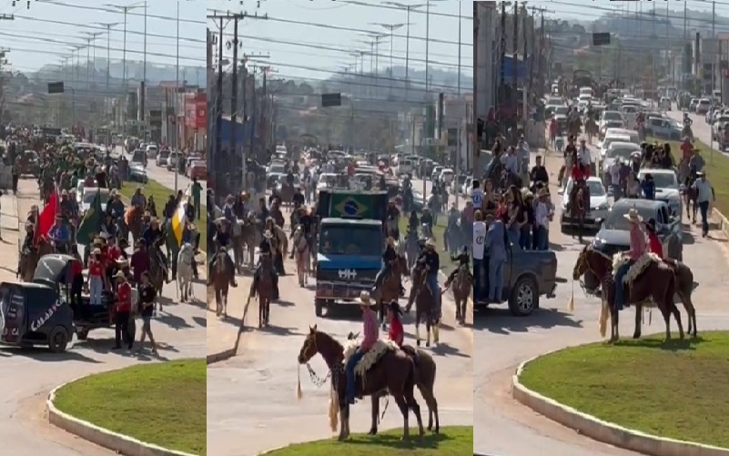 Os tambores de cascos de cavalos ecoaram em perfeita harmonia com a empolgação da multidão, enquanto as comitivas em movimento riscaram a terra e traçaram seu caminho em direção ao centro da cidade. Nas margens do trajeto, moradores e curiosos saudavam os cavaleiros com sorrisos calorosos e acenos entusiasmados, testemunhando a passagem da tradição em pleno esplendor.(Assista ao vídeo abaixo)