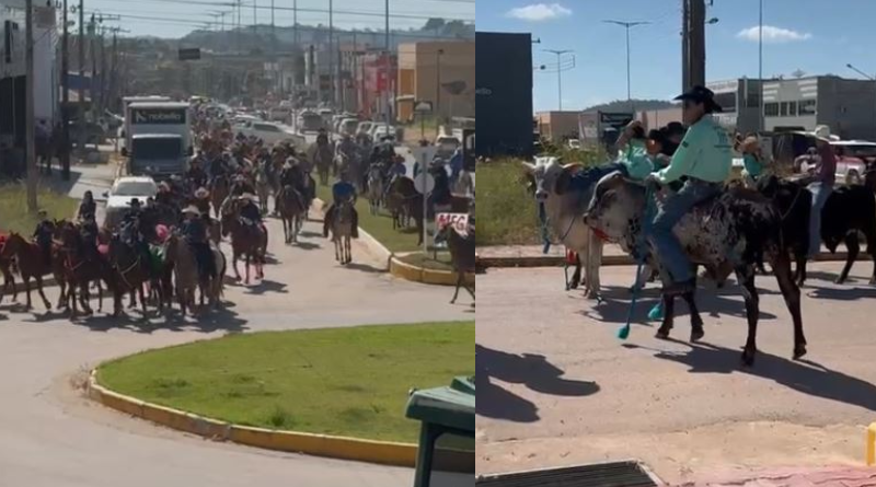 Foto: Reprodução | A tradicional cavalgada de Novo Progresso já está acontecendo neste sábado, 31 de maio de 2025. O desfile de cavaleiros e comitivas acaba de chegar à Avenida João Atiles, onde faz o contorno pela Avenida Brasil até alcançar a Avenida Jamanxim, com destino final na APRONOP.