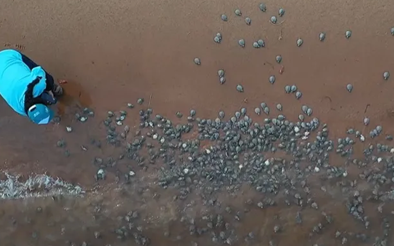 Foto: Reprodução | O ciclo de reprodução, que começou em agosto, está sendo acompanhado por uma equipe de biólogos e auxiliares, que monitoram desde a desova até o nascimento dos filhotes, geralmente entre a madrugada e o amanhecer.