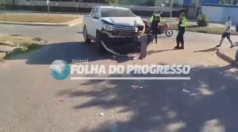 Foto: Reprodução | Na tarde desta sexta-feira, 18 de julho de 2025, duas caminhonetes se envolveram em um acidente no cruzamento entre a Avenida Brasil e a Avenida Pará, em Novo Progresso.