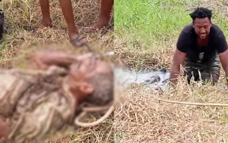 O presidente do bairro entrou na área alagadiça com uma corda e conseguiu alcançar o idoso, resgatando-o a tempo; por pouco ele não sufocou na lama.