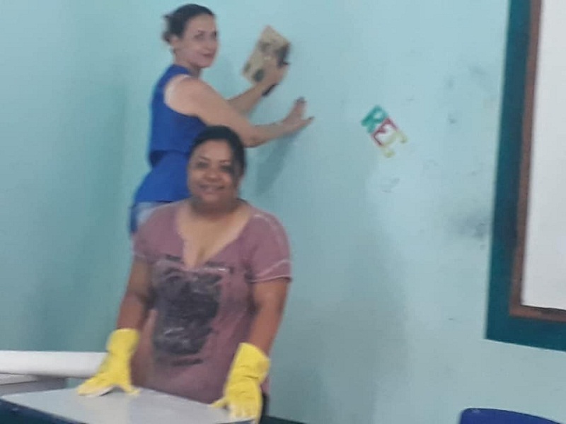 A menos de um ou dois dias das aulas, que começou no dia 19 de fevereiro, a direção do colégio convocou a comunidade escolar para um mutirão de limpeza. Entre professores, pais e estudantes, faxina e pintura foram feitas pela manhã na instituição, onde estudam cerca de 500 alunos.