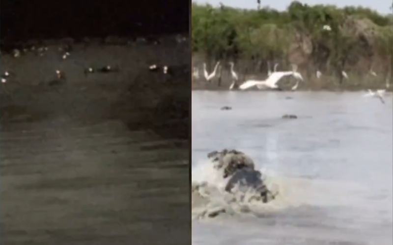 Apesar de intimidadora, a situação não surpreende Rainilson, que se diz acostumado a encontrar os animais enquanto navega pela área para trabalhar. Foi ele o responsável por outro registro impressionante na mesma região, quando passou em uma embarcação perto de vários jacarés em um banco de areia.