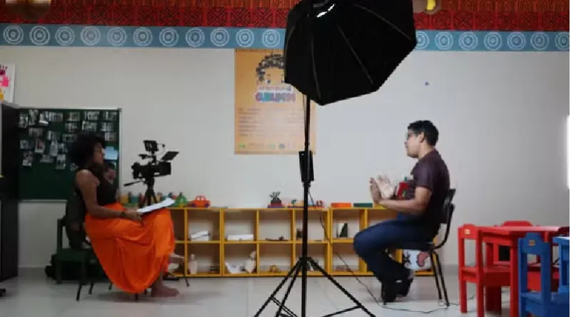 Gravação do documentário Afrotecando: Educação Antirracista na Amazônia — Foto: Kathellem Mota