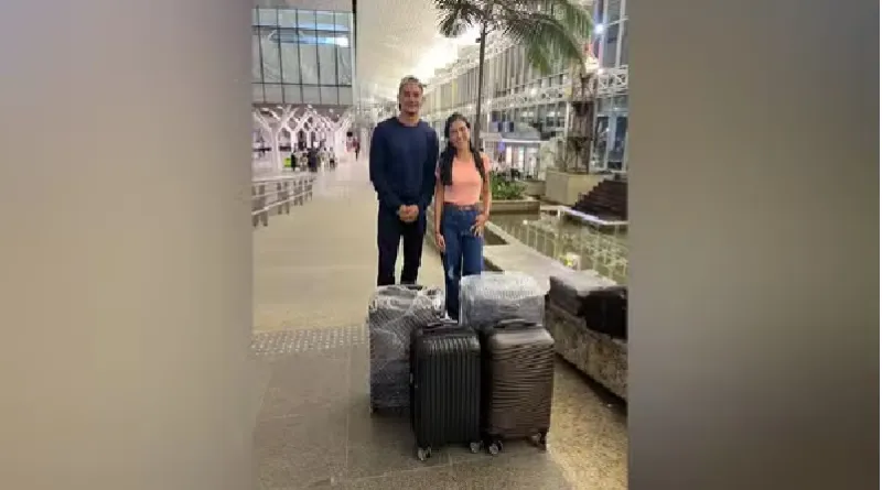 Jerlam Laurindo Cunha e Luanda Evelly Oliveira de Carvalho embarcaram para intercâmbio em Portugal — Foto: Divulgação