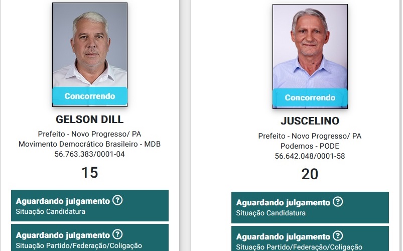 Juscelino Alves Rodrigues e Gelson Luiz Dill são os candidatos a prefeito de Novo Progresso-PA (Foto:Divulgação TSE) –