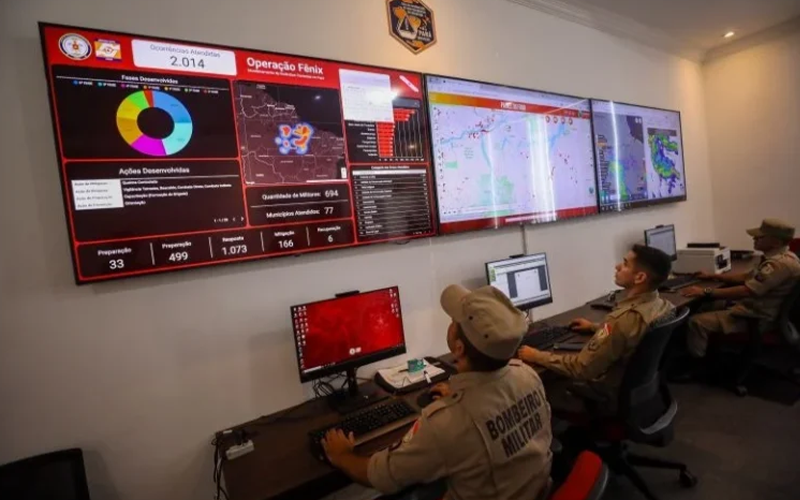 “Esse é um espaço destinado para que a gente faça o monitoramento ambiental, por meio de aplicativos especializados, disponibilizados por plataformas abertas, contamos com vários técnicos especialistas, tanto na área de combate de incêndios florestais, quanto na parte de geografia, geotecnia, processamento de dados e tecnologia da informação, que fazem análises climáticas e ambientais voltadas para as atividades tanto de defesa civil como de resposta a desastres”, explica o coronel Wagner Silva, coordenador da Operação Fênix do CBMPA.