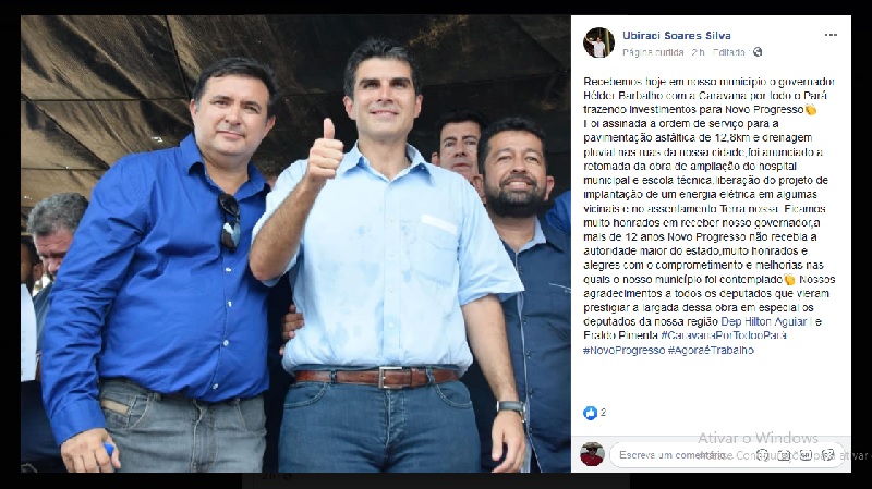 Foi assinada a ordem de serviço para a pavimentação asfáltica de 12,8km e drenagem pluvial nas ruas da nossa cidade,foi anunciado a retomada da obra de ampliação do hospital municipal e escola técnica,liberação do licenciamento ambiental da obra do programa Luz para todos, vicinal celeste e parte da vicinal Sarandi e assentamento . Ficamos muito honrados em receber nosso governador,a mais de 10 anos Novo Progresso não recebia o líder majoritário do nosso estado,muito honrados e alegres com o comprometimento e melhorias nas quais o nosso município foi contemplado?? Nossos agradecimentos a todos os deputados que vieram prestigiar a largada dessa obra em especial os deputados da nossa região Dep Hilton Aguiar e Eraldo Pimenta