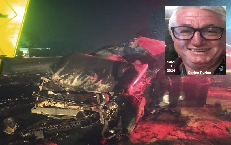 Um grave acidente na BR-163 no sentido Sul da rodovia, nas proximidades da comunidade de Nova Veneza distante 18 quilômetros de Novo Progresso, na noite deste sábado, dia 21 de setembro de 2024, vitimou o empresário progressense Carlos Perina, proprietário do Panelão Caça e Pesca.O carro do empresário colidiu na traseira de uma carreta e morreu no local.