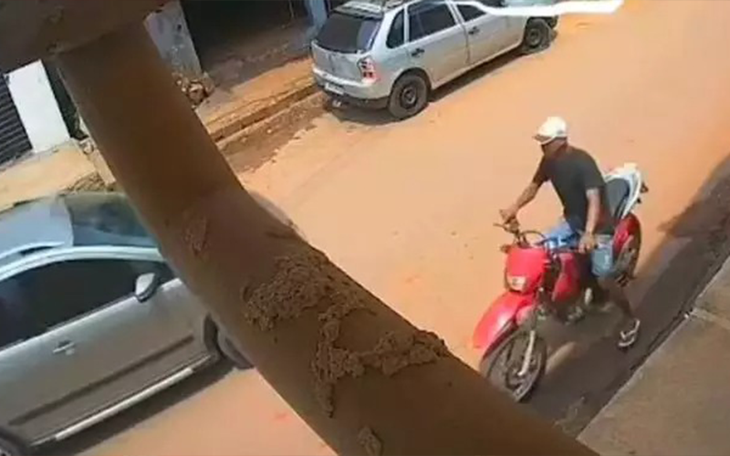 Por meio das imagens, é possível ver o momento em que os suspeitos chegam ao local em uma motocicleta. Um deles entra no comércio fingindo ser cliente. Minutos depois, ele anuncia o assalto, roubando mercadorias, dinheiro e um celular.