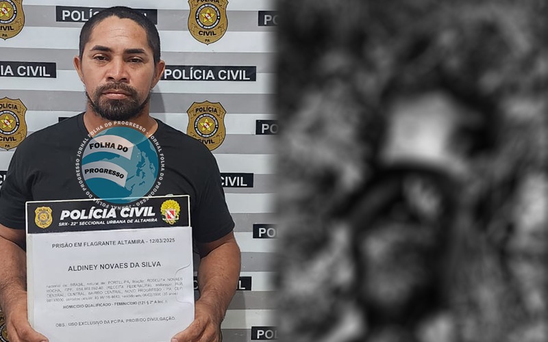 A prisão de Aldiney Novaes da Silva, foi possível após informações repassadas pela Policia civil de Novo Progresso no dia (10/03/2025) para os policiais da 22 Seccional Urbana de Altamira a respeito de um desaparecimento (possível feminicídio) cometido na área rural do município. Conforme o repassado, o suspeito seria o nacional conhecido como ALDINEY, sendo disponibilizado a equipe policial uma foto do indivíduo, o qual teria fugido em direção a cidade de Altamira, com o fim de seguir viagem e se homiziar na zona rural do município de Senador José Porfírio. Diante dos fatos, a equipe da Delegacia de Altamira passou realizar campanas na Rodoviária do município com o objetivo de interceptar o suspeito. Nesta quarta-feira (12), aproximadamente às 15h30min, ALDINEY foi avistado consumindo bebida alcoólica em uma distribuidora próxima a rodoviária, ao ser abordado, imediatamente confessou ter assassinado sua companheira DICÉLIA GOLÇALVES, no domingo, dia 09/03/2025, e vindo a fugir em direção a Altamira via ônibus. Ainda, informou a equipe policial que estava aguardando receber um valor de familiares para poder comprar a passagem para seguir para a cidade de Senador José Porfírio. Quando questionado sobre o corpo de sua companheira, ALDINEY indicou onde o corpo estaria ocultado, inclusive, gravando um áudio para a equipe policial da Delegacia de Novo Progresso para que se realizasse o resgate do corpo de sua companheira. Por fim, não foi necessário o uso de algemas pela equipe policial em razão da cooperação do conduzido, que confessou o crime.