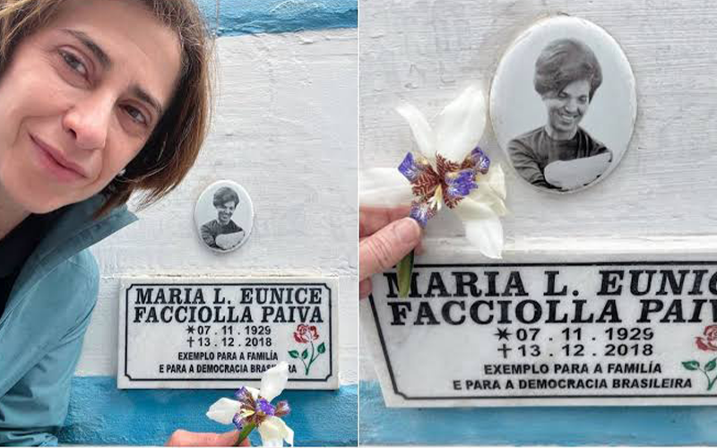 Na imagem é possível ver uma mensagem gravada na lápide de Eunice, que diz: “Exemplo para a família e para a democracia brasileira”, diz a despedida à advogada, em referência à sua luta contra a ditadura militar.