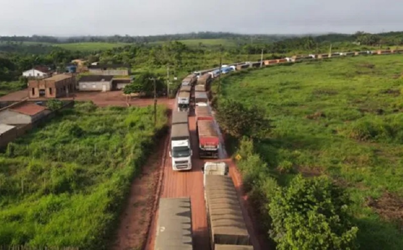 Uma longa fila de caminhões se formou na BR-230 em Itaituba, no sudoeste do Pará. Motoristas tem seguido até o quilômetro 30 da rodovia, mas acabam retornando pois não têm acesso para seguir viagem até o distrito de Miritituba – área de escoamento de grãos entre Mato Grosso e Pará e principal porto de abastecimento de combustível da região. “Proprietários de postos de Novo Progresso, reclamam a demora para chegar até área portuária, caminhões tanques ficam parados e levam até cinco dias para chegar ao carregamento nas bases de combustível em Miritituba, no Pará.