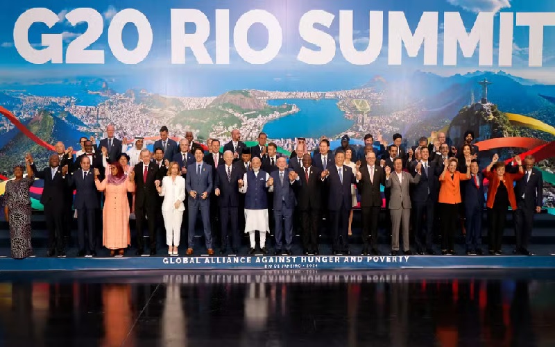Não posaram desta vez o argentino Javier Milei, a mexicana Claudia Sheinbaum, o britânico Keir Starmer e o russo Sergey Lavrov. Até a última atualização desta reportagem, não se sabia por que eles não apareceram no palanque — agora interno, de 3 andares, com um painel do Rio ao fundo.