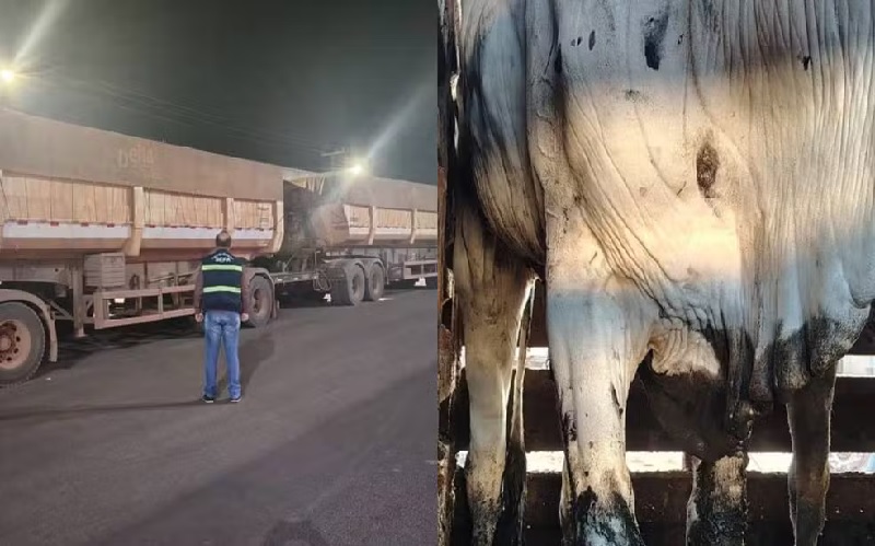 A fiscalização fez a verificação e contagem física da carga e identificou 16 bovinos machos acima de 24 meses, inclusive com marcação de registro em paletas, que não constavam na nota fiscal apresentada.