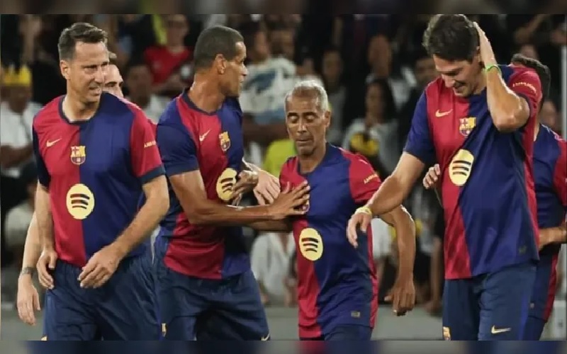 (Foto: Reprodução/@barcalegends/Instagram) – Equipe do Barça Legends tem Romário, Rivaldo e outros grandes nomes da história do Barcelona.