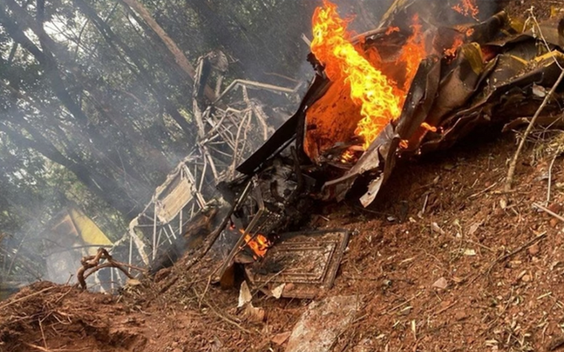 Mas, em seguida, o piloto decidiu subir voo. No início da viagem, o helicóptero bateu contra a serra e explodiu.