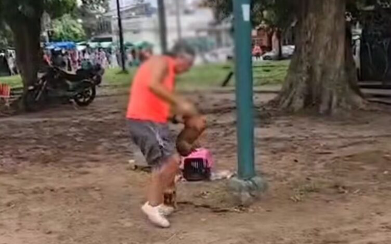 Um homem foi preso após ser filmado agredindo um filhote de cachorro neste domingo (29), na praça da República, em Belém.