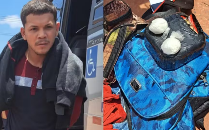 Durante a abordagem, os policiais identificaram Antônio, que carregava uma mochila de cor azul. Ao inspecionar o conteúdo da bagagem, a equipe encontrou um tablete grande de substância análoga a crack, pesando aproximadamente 1.060 kg, além de duas porções de substância branca, aparentando ser cocaína, com peso total de 60 gramas.