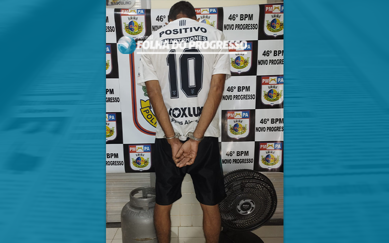 Foto: Reprodução/46°BPM | Na tarde deste domingo, 9 de fevereiro de 2025, a Polícia Militar prendeu em flagrante um homem acusado de furto em uma residência no bairro Otávio Onetta, em Novo Progresso.