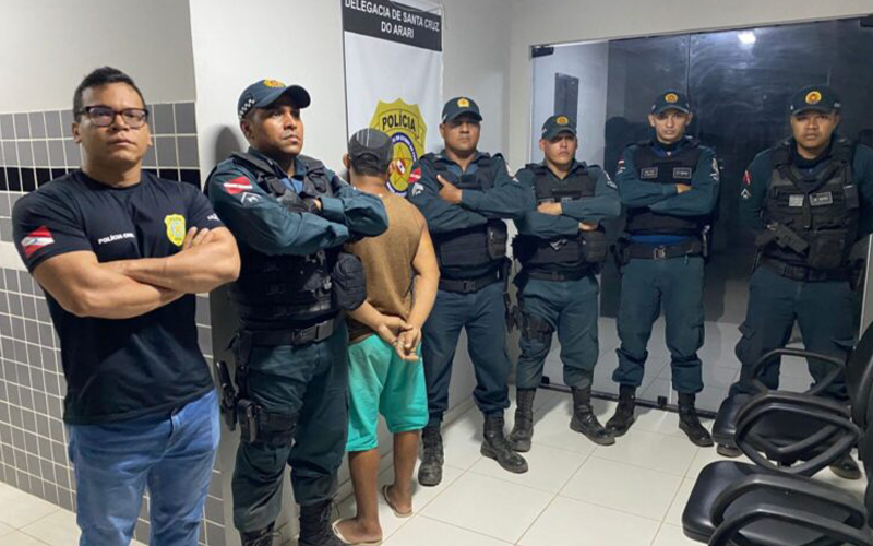 O suspeito foi encaminhado à delegacia de Polícia Civil de Santa Cruz do Arari, onde os procedimentos legais foram realizados, e permanecerá à disposição da Justiça.