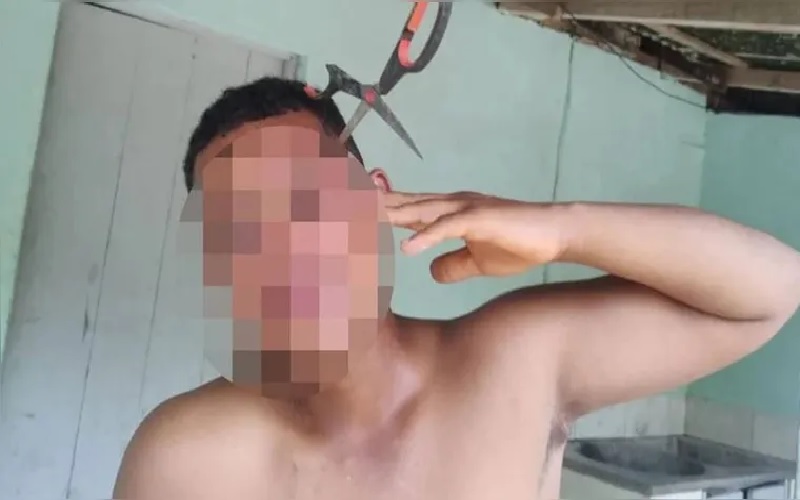 Homem ficou com tesoura cravada na cabeça em Pancas. | REPRODUÇÃO