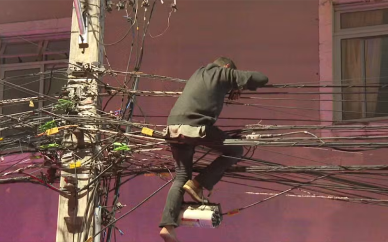 Homem fica preso em fiação durante tentativa de furto em Curitiba — Foto: Tony Mattoso/RPC